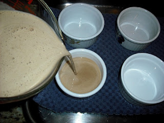 Technically, this works better if you have the actual "pots de creme" that are what give this custard dessert its name. They are kind of like a demitasse (espresso sized) cup with a lid. But in a pinch, you can use ramekins; which I have have done here, because I only have ONE of these little pots.